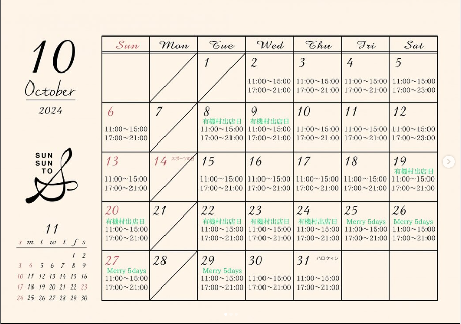 いつもご来店ありがとうございます(⁎ᴗ͈ˬᴗ͈⁎) 10月のお知らせです! 10月はイベント盛りだくさん。 お待ちかね!1号店醸しカフェゆうゆうと、醸し薬膳さんさんとの商品が、有機村さんで店...