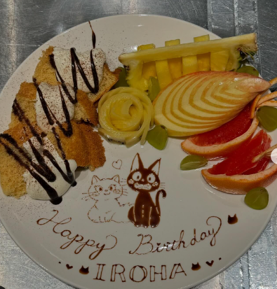 ご来店のお客様のご依頼で描かせて頂きました✨ 急遽のご依頼でしたが、対応させて頂くことができました🐾ฅ( ˙꒳​˙ ฅ) フルーツの飾り切りも凄い!! 喜んでいただけて嬉しいです𓌉𓇋 ....
