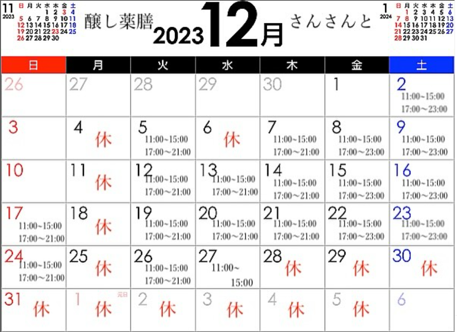 いつも醸し薬膳さんさんとをご利用頂きありがとうございます。 今年も残すところわずかですね!あっという間に1年が過ぎてしまいますね💦 4月27日にオープンし、本当にたくさんのお客様がご来店頂き感謝申...