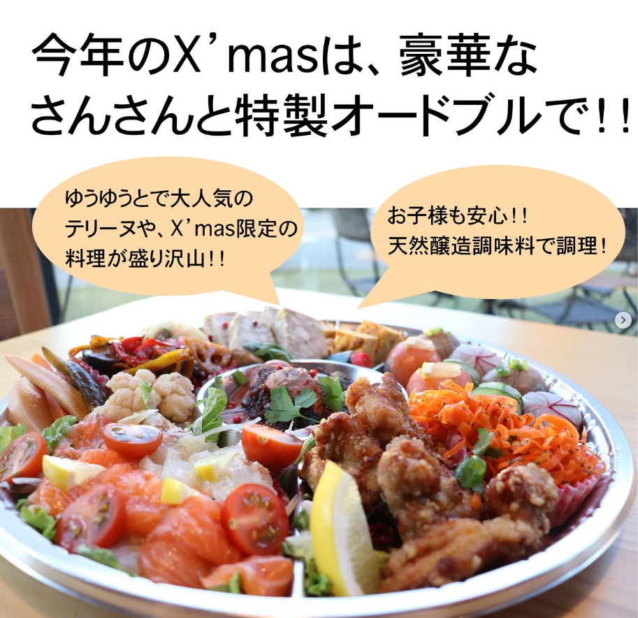 普段とは違い、ゆうゆうとで大人気のテリーヌや、Xmas限定料理が盛りだくさんです☺️