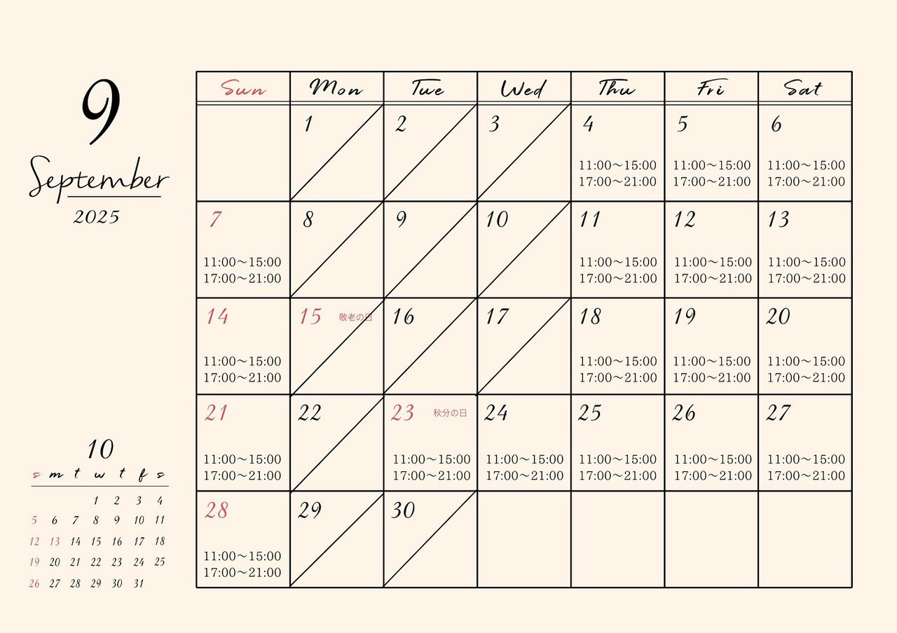 いつも醸し薬膳さんさんとをご利用いただきありがとうございます✨️ 9月の営業カレンダーです! 通常、定休日は月曜日〜水曜日となりますが 9月23日(火)、9月24日(水)... -