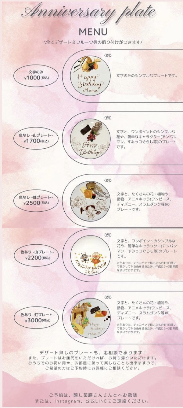• ≪7/15よりアニバーサリープレート価格改定のお知らせ≫