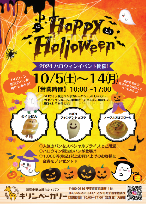 こんにちは.ᐟ.ᐟ キリンベーカリーです。 とってもお得なイベントのお知らせです♩ 今週末10/5(土)〜10/14(月)までの期間中、 ハロウィンイベントを開催いたします。 ハロウ... -