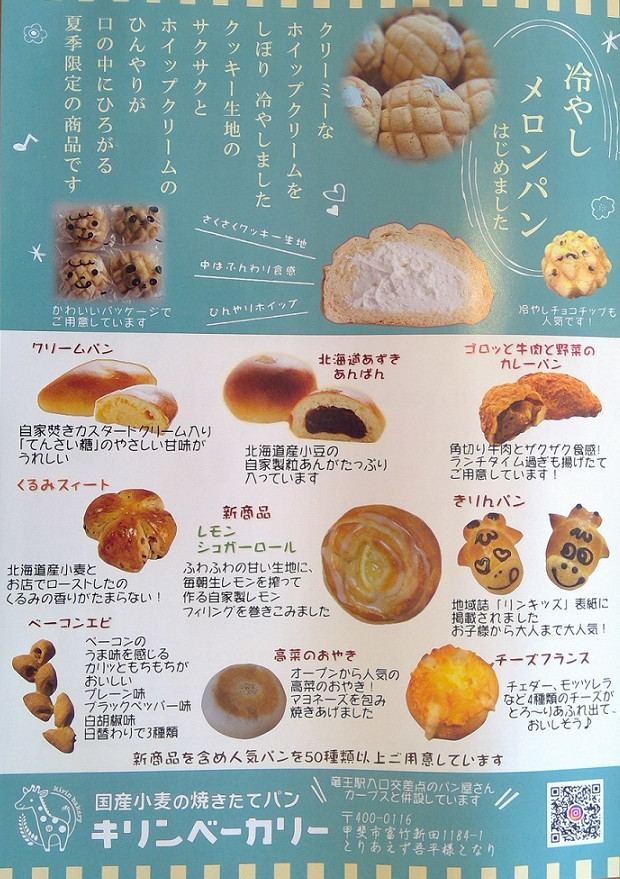 国産小麦の焼きたてパン『キリンベーカリー 甲斐竜王店』は国産小麦100%の無添加生地でパンを作っています。国産小麦100%の無添加生地でパン作るパンはふわふわでモチモチで、小麦本来の香りや味をお楽しみ...
