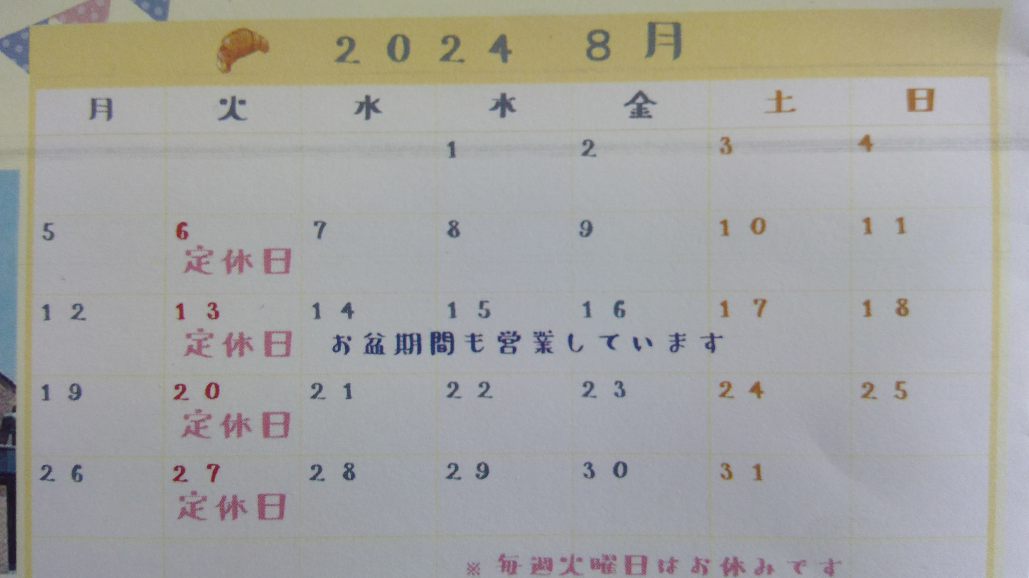 定休日 火曜日