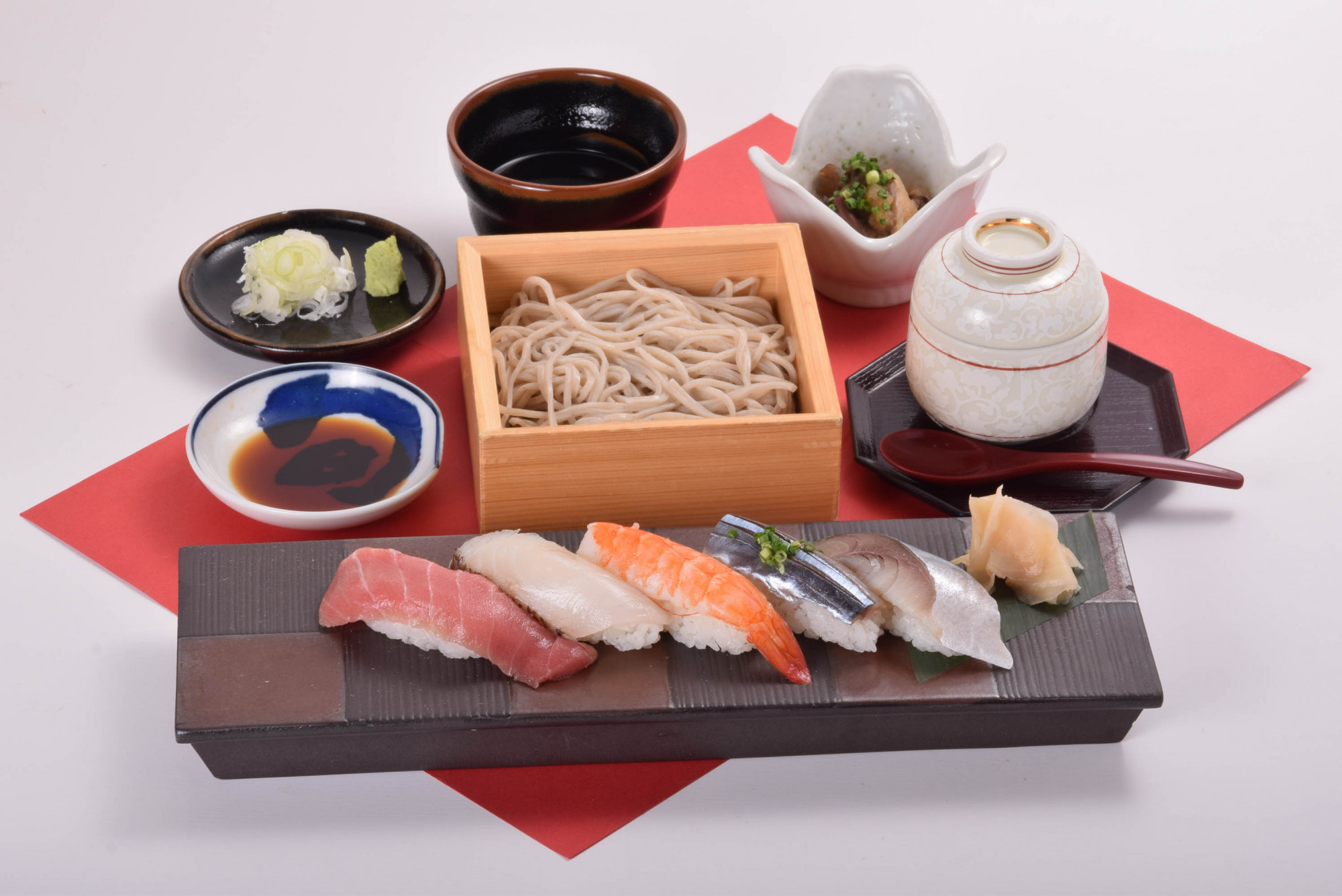 旬の新鮮のネタの寿司と選べるおそばをご一緒に