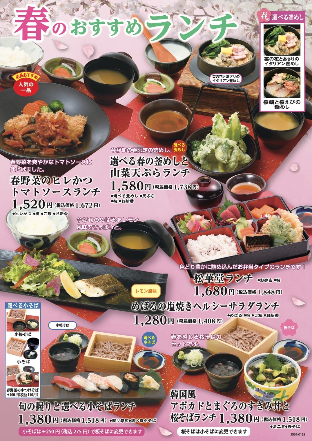 ・花かご寿司御膳 3,520円 ・楽御膳 2,068円 ・選べるお楽しみ御膳 1,958円 ・おこわ釜めし天ぷら刺身御膳 2,618円 ・炙り牛ステーキ御膳 2,618円~ ※全て税込 |