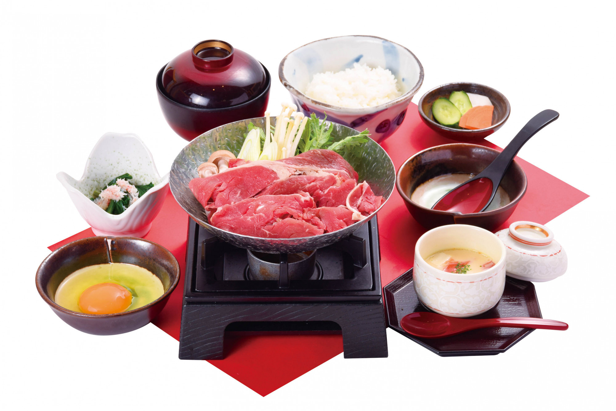 ・すき焼き(卵)・茶碗蒸し・小鉢・椀・ご飯
