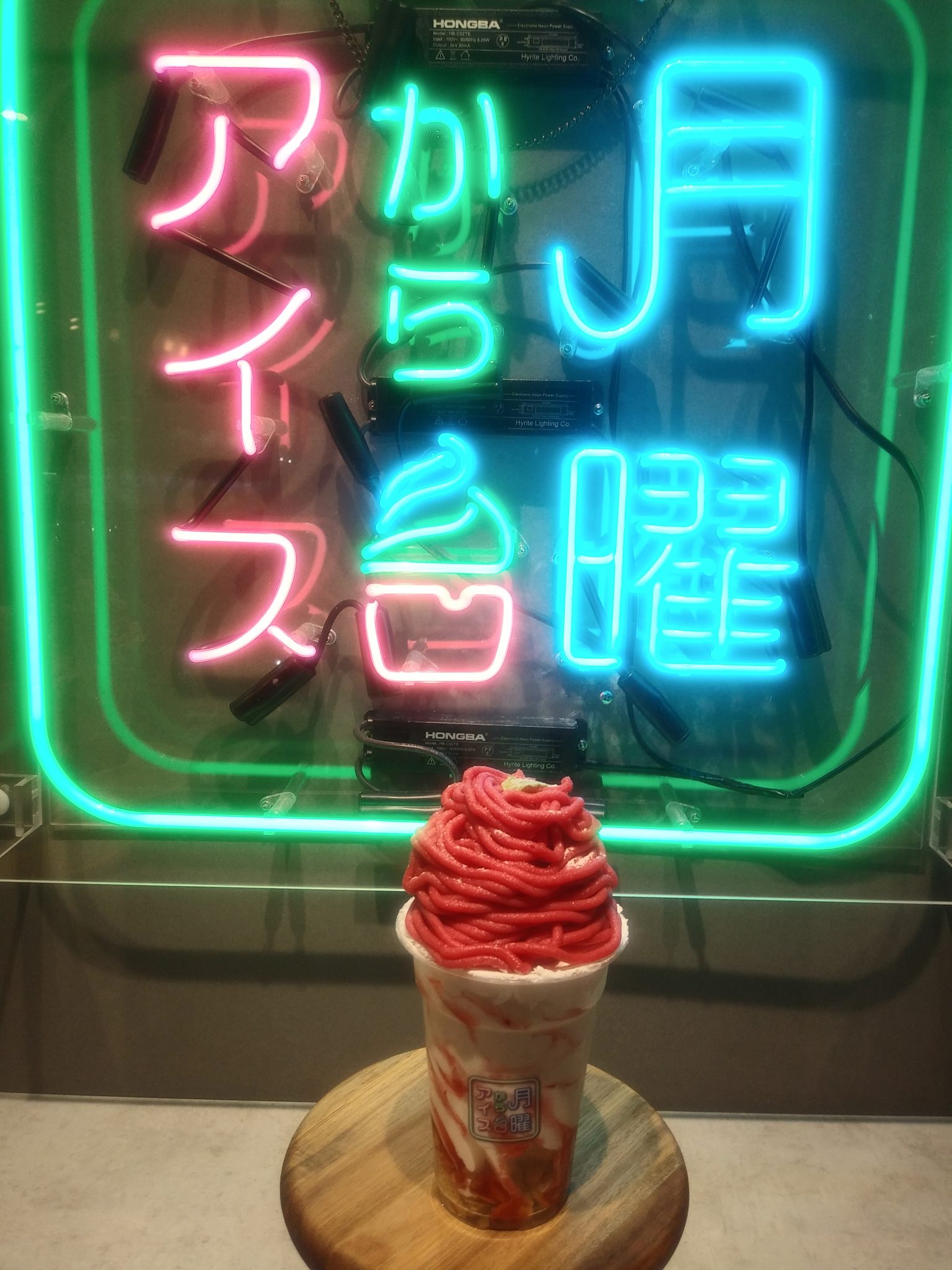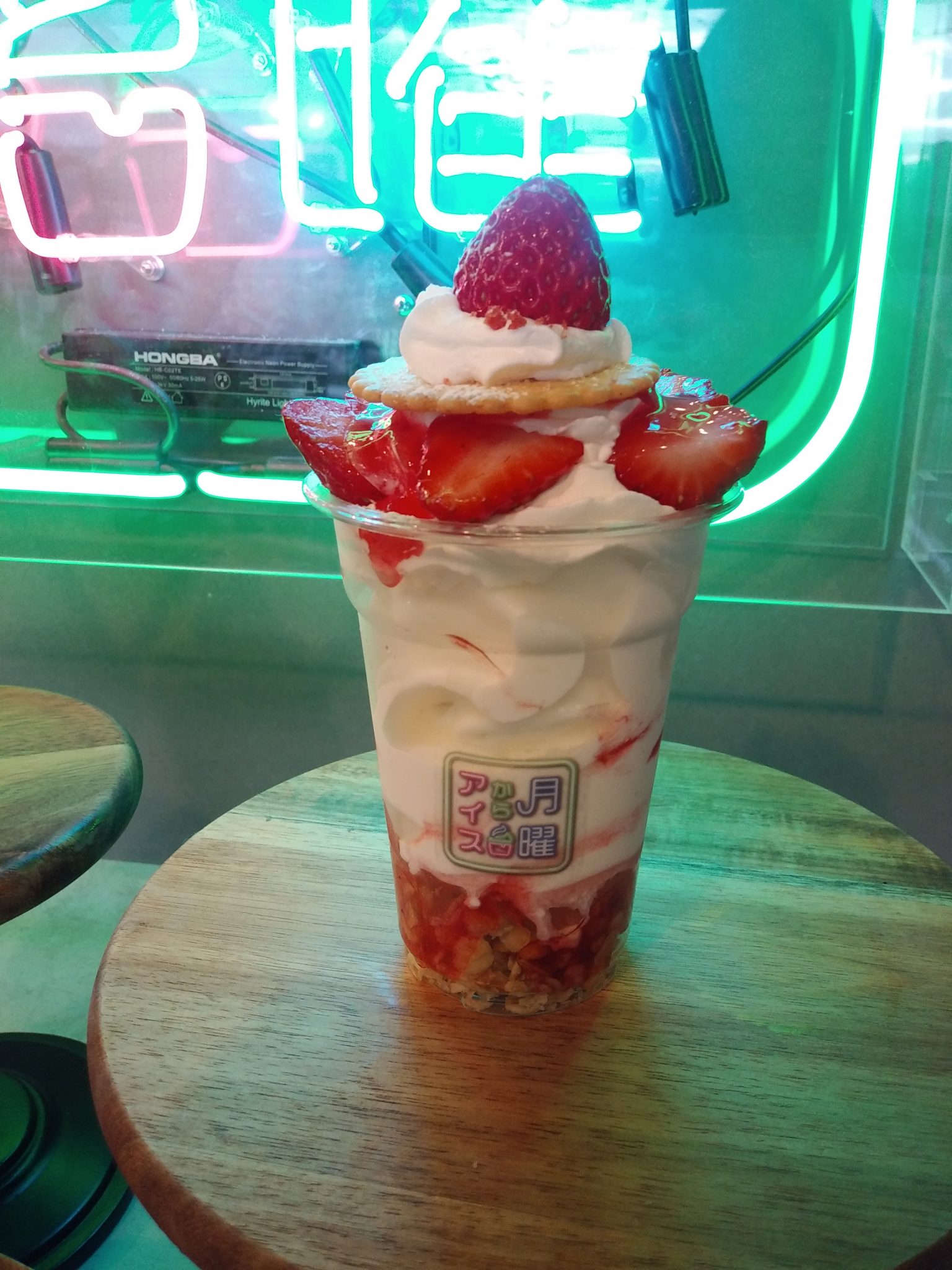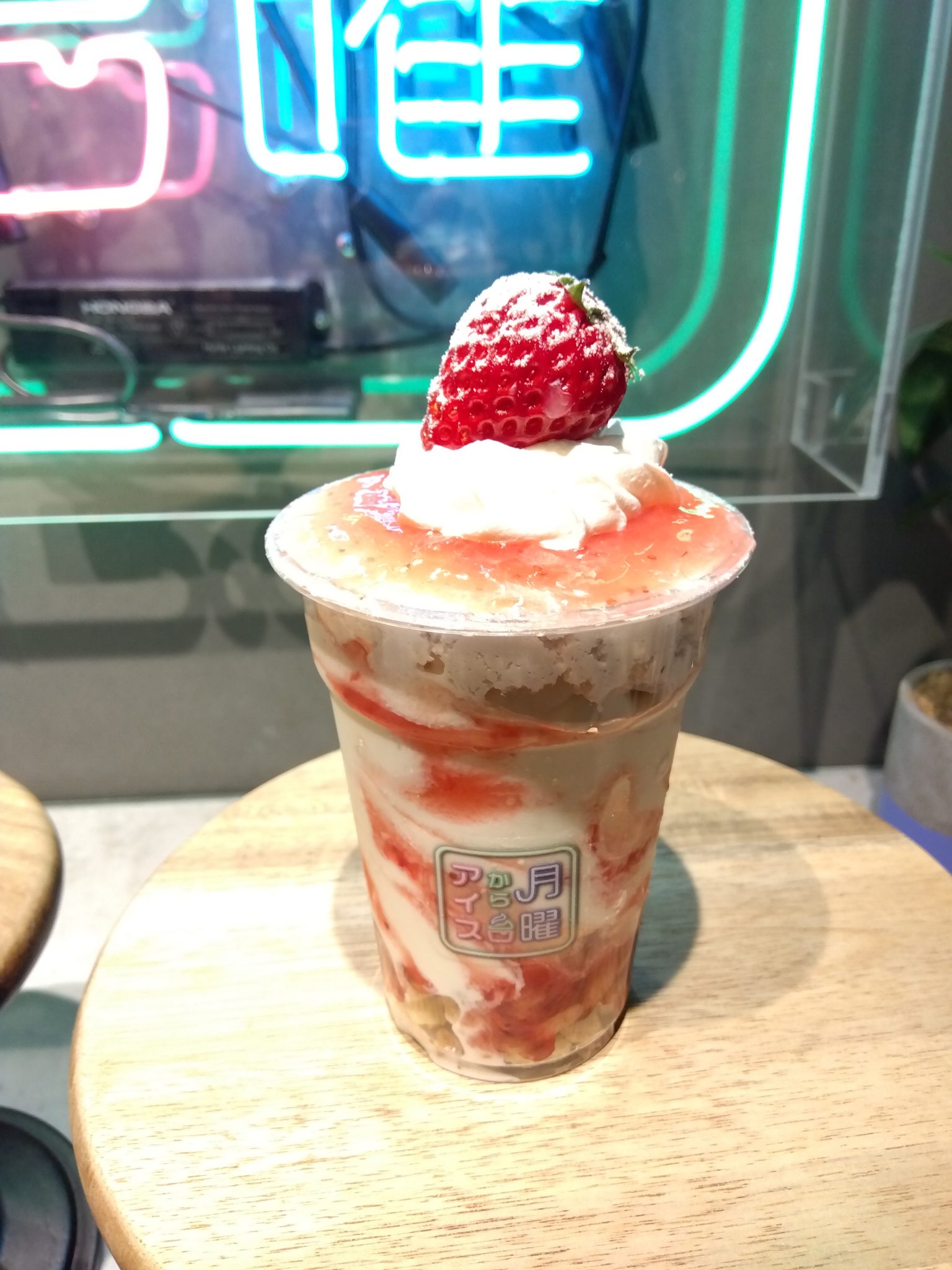 期間限定の「イチゴおもちアイス」を注文しました。もちもちやわらかい求肥、甘いイチゴ、さっぱりしたアイスがとても美味しかったです。イートインスペースがあり、そちらで頂くことも出来るので良いと思いました。