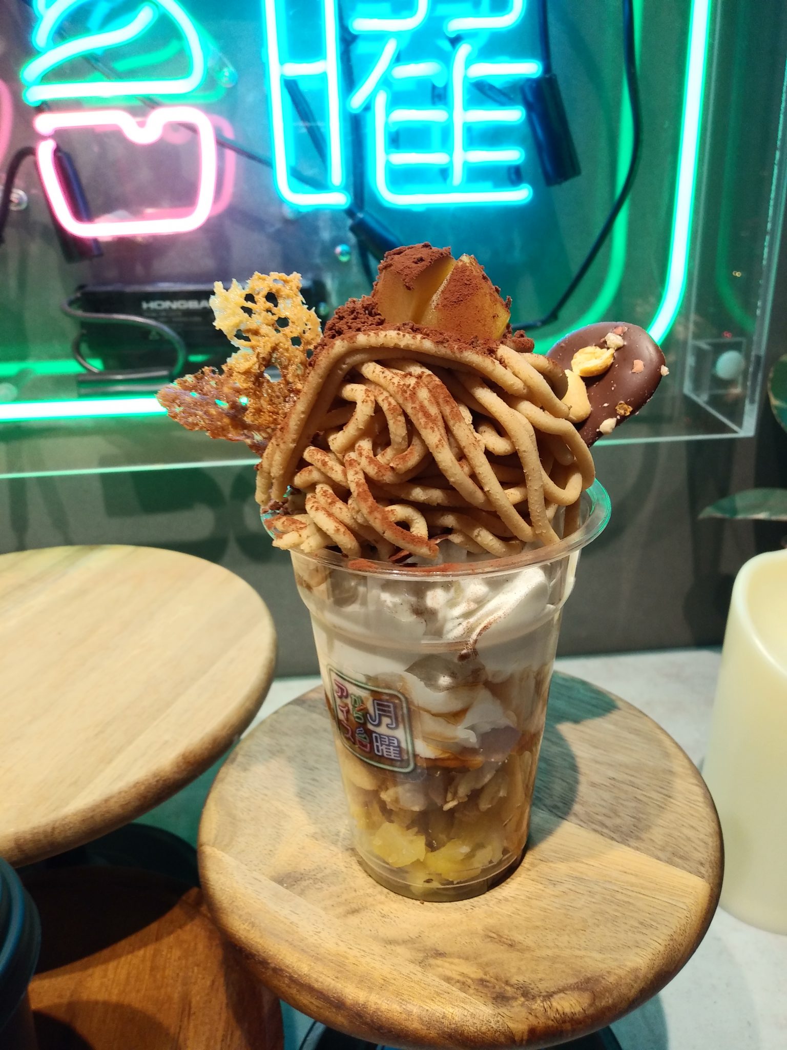 期間限定のアイスで、和栗モンブランです。モンブランクリームはしっとり系で美味しかったです。ホイップクリームやソフトクリームも入っていました。底には柑橘のフルーツ入りでした。トッピングのチョコが大きくて、美味しかったです。