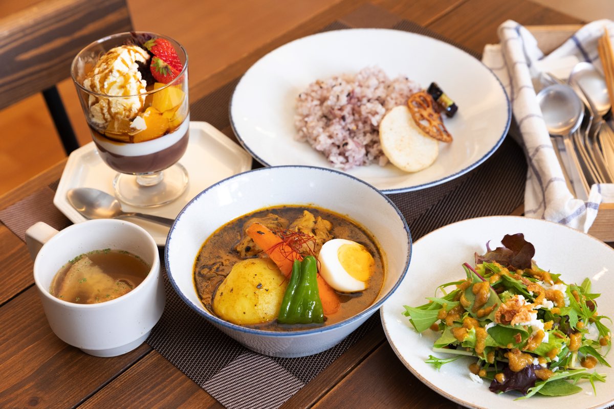 <ランチ> ※すべてスープ・サラダ・デザート・ドリンク付き ・タコライス 1,450円 ・そば粉のガレット 1,500円 ・スープカレー 1,500円 ・ハンバーグのパイ包み焼き 1,550円 ・本日のパスタ 1,500円 |