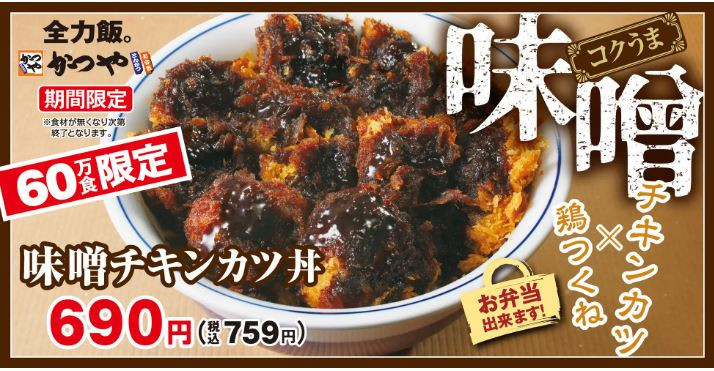 冬になると恋しくなる「味噌」が、今年はダブルチキンで楽しめる!60万食限定で「味噌チキンカツ」を、とんかつ専門店「かつや」にて12/13(水)より販売開始 プリっと肉厚でサクサクな衣をまとったチ... -
