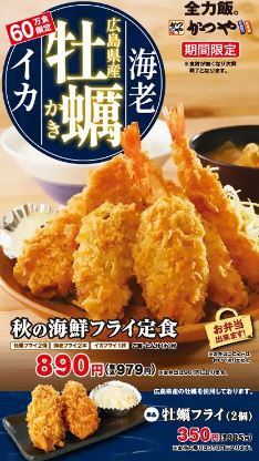 また、カツ丼やロースカツ定食に追加して秋の訪れを楽しめるよう、広島県産 牡蠣フライ単品(2個)として販売いたします。