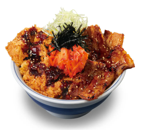 • ≪豚カルビ焼肉とチキンカツの合い盛り丼≫