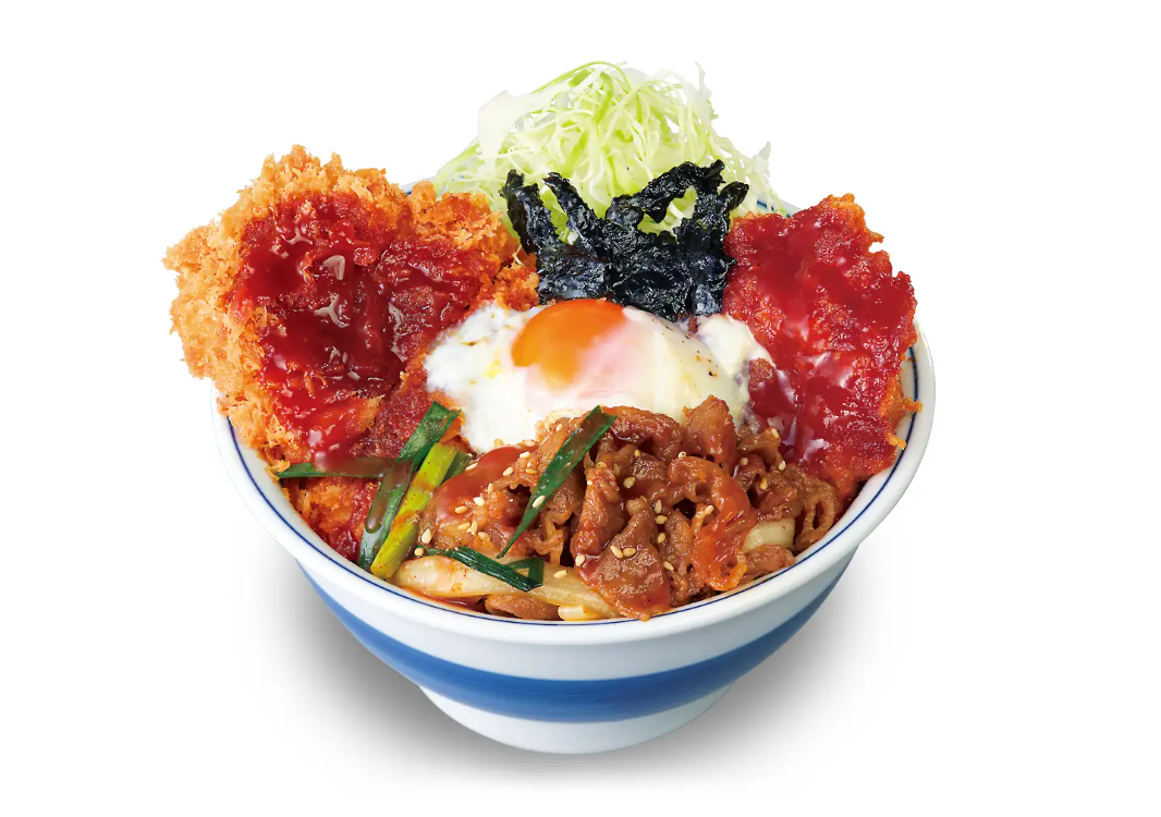がっつり食べたい食欲の秋に、「プルコギビビンカツ」が丼と定食になって登場! 丼にのっているのはなんと3種のお肉。 プルコギ味に炒められた牛、玉ねぎ、ニラが相性抜群。 そしてクセになる味のヤン... -