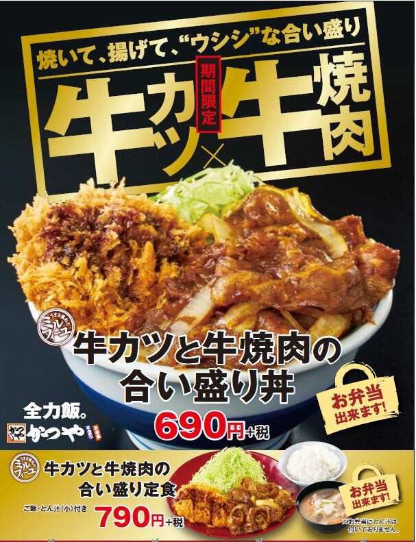2021年かつやの丑年は、 牛カツと牛焼肉の合い盛りフェア 2021年かつやの丑年「牛カツと牛焼肉の合い盛りフェア」 期間限定!2/5(金)~3/4(木) 牛ミルフィーユカ...