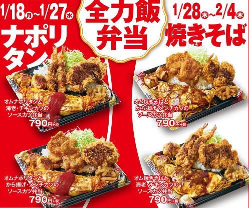 オムナポリタンとから揚げ・メンチカツのソースカツ弁当/790円(税別)
