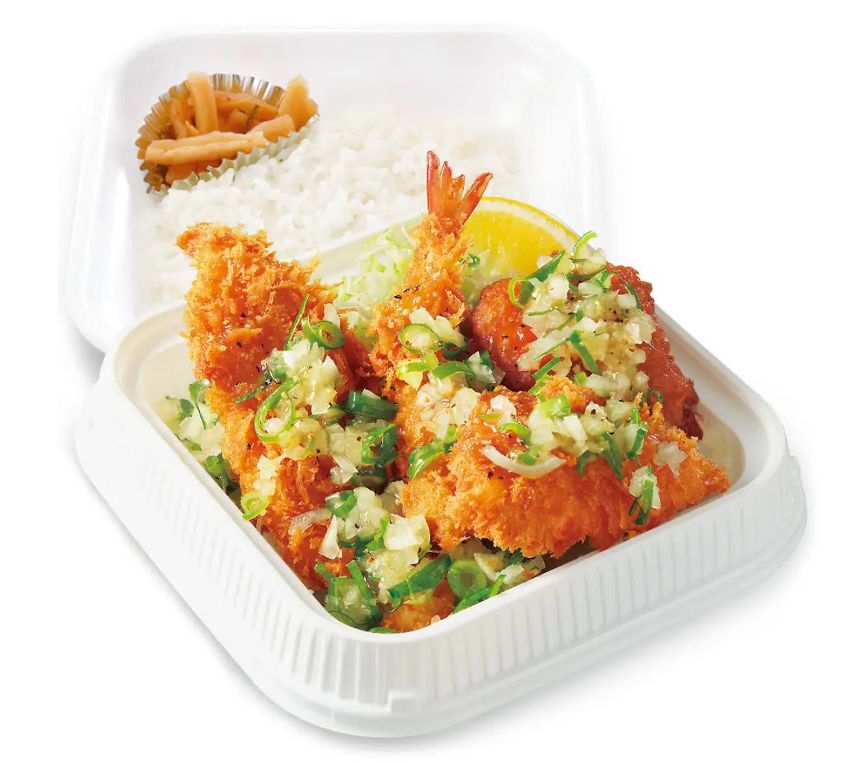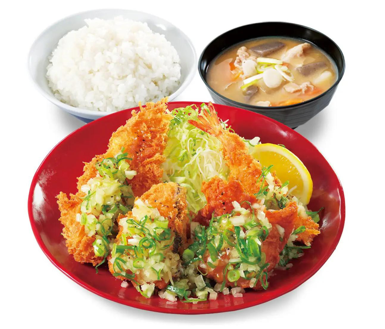 究極の生パン粉で仕上げた鶏ささみ・鮭フライ・海老フライと、特製から揚げ粉で仕上げた鶏のからあげを盛り付けた「ねぎ塩カツ定食」 暑さで食欲がわかないかも・・・と迷う気持ちは、たっぷりの青ねぎと玉ねぎ、... -