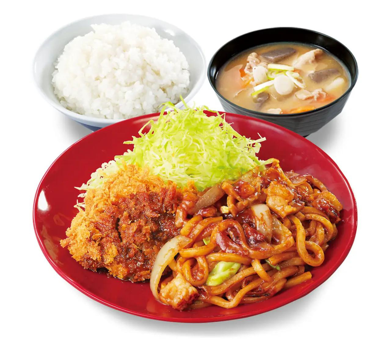 「ホルモン焼きうどんとチキンカツの合い盛り定食」を期間限定で販売を開始!