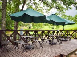 浩庵富士山とその裾野・本栖湖を一望できるキャンプ場に併設しているレストラン♪新鮮なわかさぎをサクッと揚げ... -