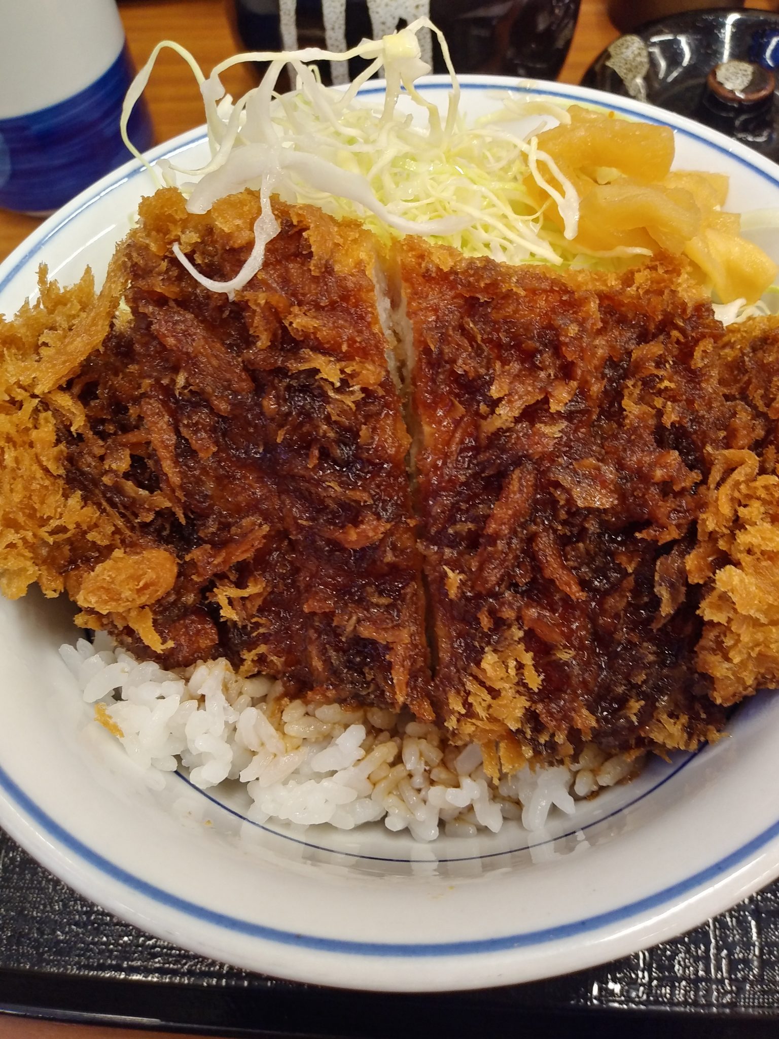 • ソースカツ丼を食べました。卓上に設置されているソースとは味が違い、甘辛いソースがカツに染みて、食べ応えのある美味しいカツ丼でした。