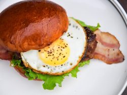清泉寮パン工房のミルクパンに清泉寮牧場産ビーフのパテと清里ベーコンをサンド♪ -
