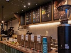 富士山五合目にある「富士山みはらし」1階のカフェ兼焙煎所「富士山焙煎堂」。