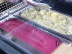 暑い日だったので並んでいました。ドライブスルーもあります。何種類かジェラートの味がありましたが、ミルクとブルーペリーを選...
