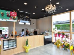 テイクアウトはもちろん、テラス席やベンチもあり。富士山を一望しながら桃やブドウなどのフルーツを始め、山梨の「味」を楽しもう。