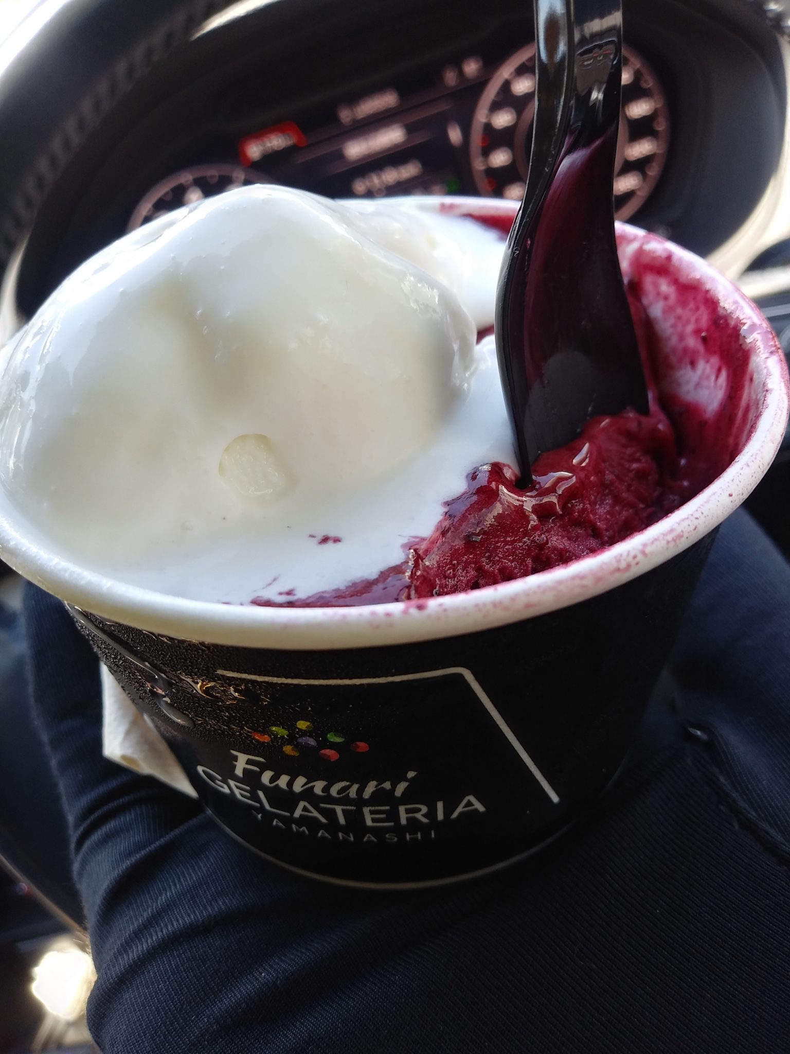 暑い日だったので並んでいました。ドライブスルーもあります。何種類かジェラートの味がありましたが、ミルクとブルーペリーを選択。あっさり味のミルク、濃厚なブルーベリー、素材の良さが伝わってくる美味しいジェラートでした。