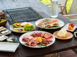 長野から仕入れる柔らかくジューシーなお肉や丁寧に処理されたジビエを楽しめるBBQは炭火で焼き上げるボリューム満点メニュー。爽やかな風が吹くテラス席でのんびりと楽しもう。