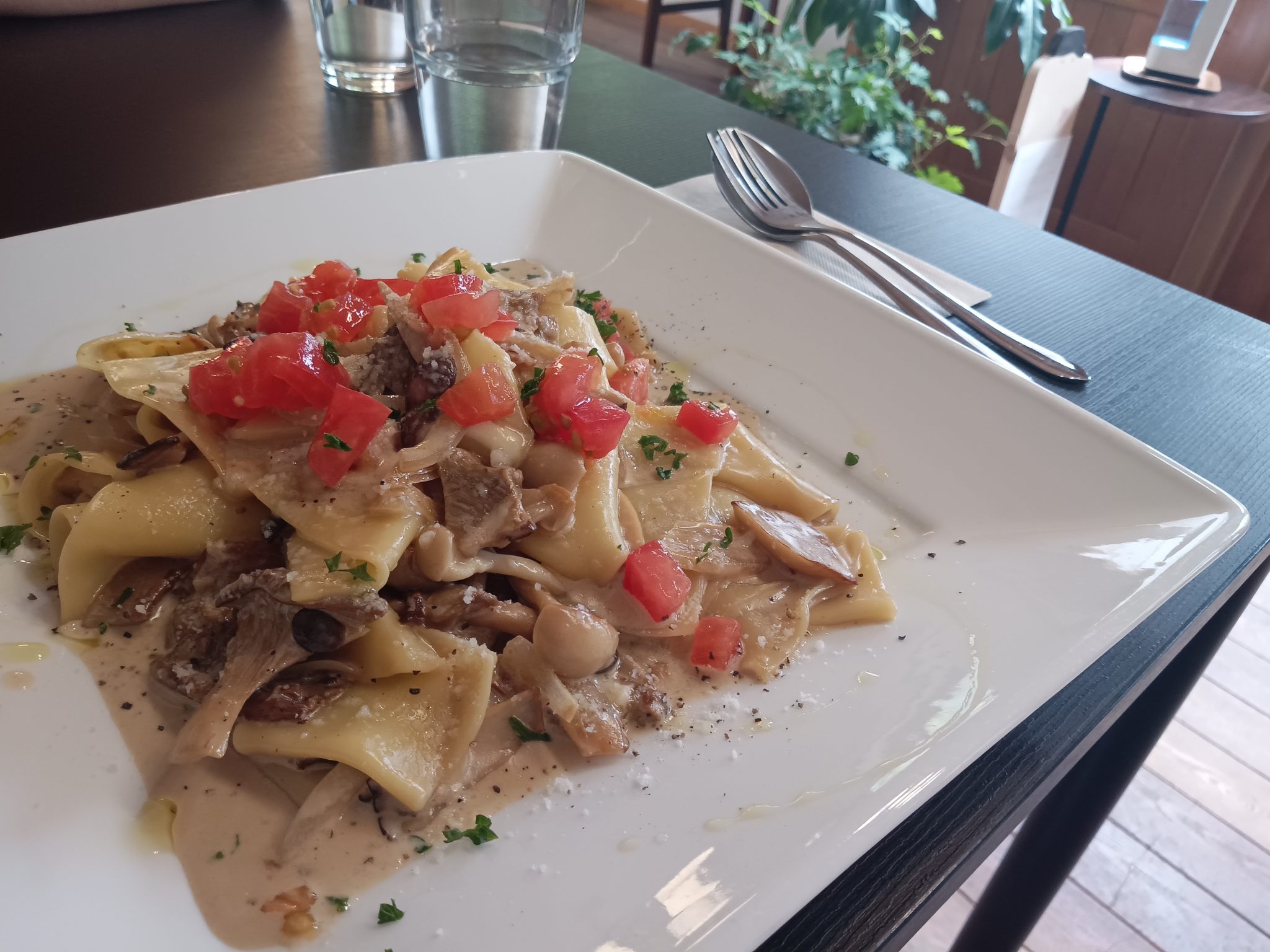 一本入った小路にあり、一見普通の一軒家で、一回は通り過ぎてしまいました。どのランチメニューも美味しそうで迷った挙げ句、平打ち麺のパスタにしました。ポルチーニときのこのがたっぷりで、秋ならではの香り高い逸品でした。前菜の色鮮やかなビーツのポタージュも美味しく、プチ贅沢なランチを満喫♥次はお肉のメインにしたいと思います!