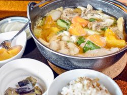 ・慶千セット (かぼちゃほうとう・季節のご飯・小鉢・香の物・デザート)1,600円 ・肉ほうとう 1,400円 ・おざら 900円(夏季限定) ※税込み |