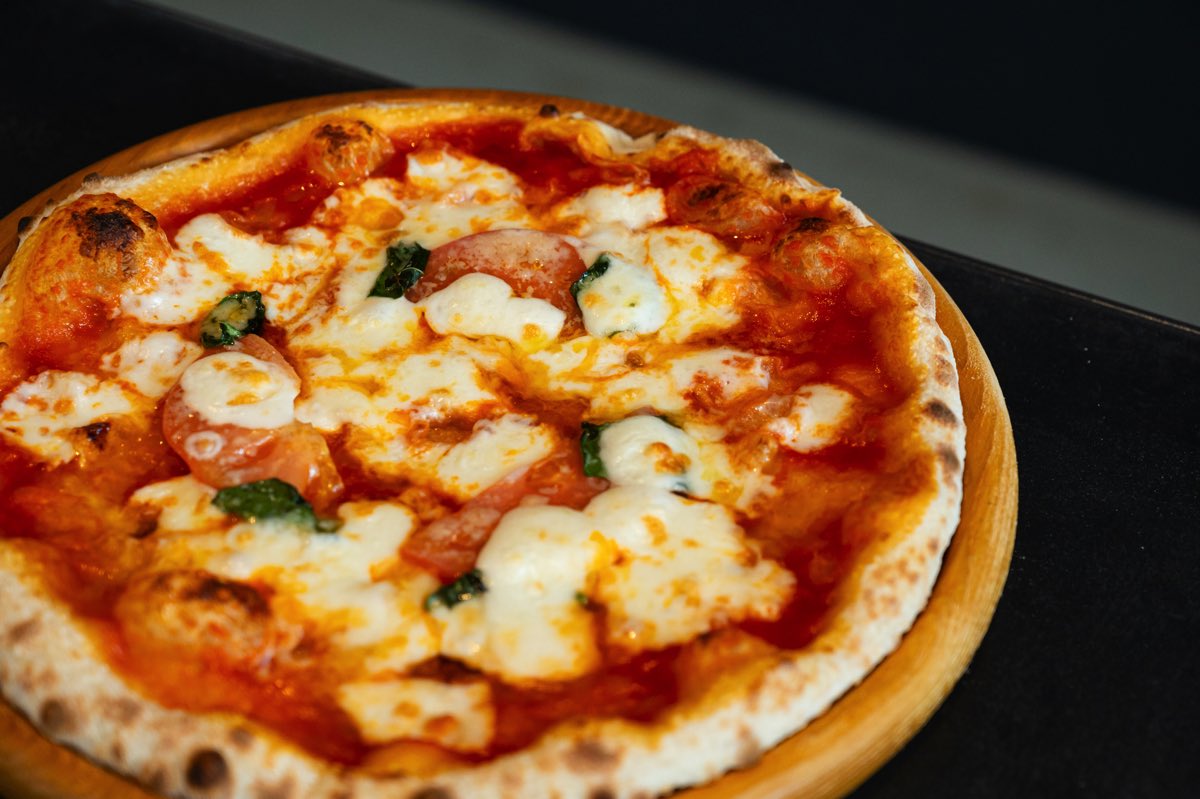 店内のピザ窯で焼き上げる、表面はパリッと中はふっくら、額がしっかり膨らんだナポリ風ピザがイチオシ。