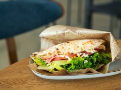 同じ生地で作ったオリジナルパニーノサンドも具材が8種類とバラエティに富む。