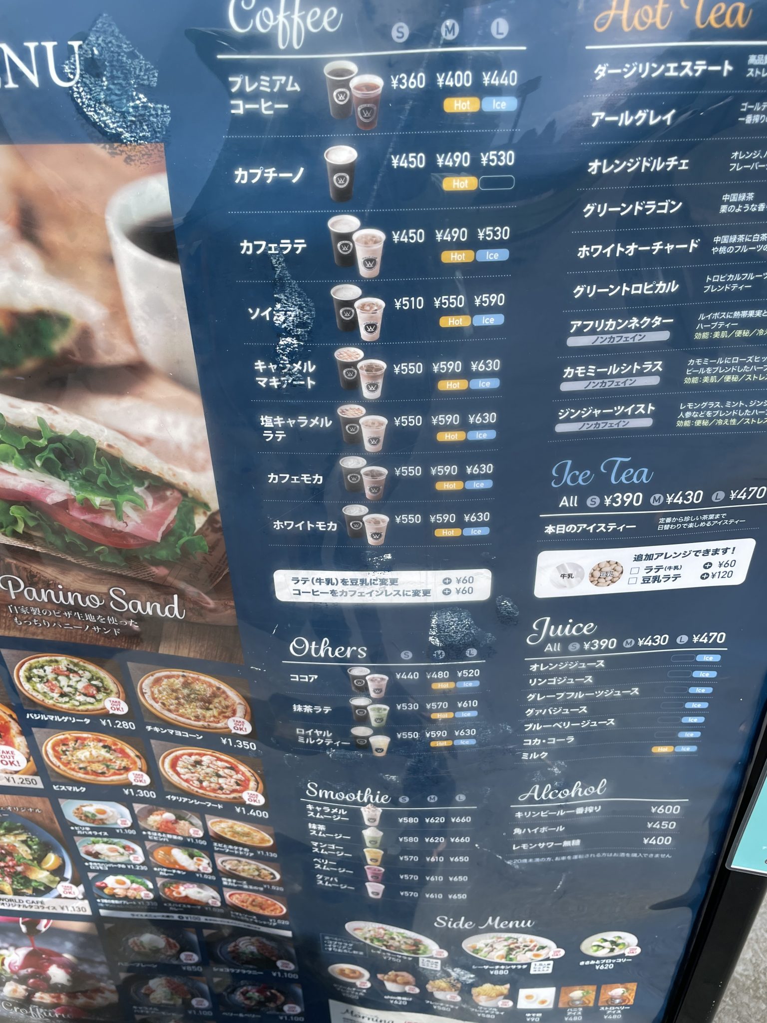 ・マルゲリータ 1,200円 ・クロッフル ベリー&ベリー 1,050円 ・パニーノサンド フレッシュトマトとベーコンサンド 610円 ・ピリ辛ガパオライス 1,080円 ・スムージー S550円、M580円、L620円 ・ホットティー 480円 ・カフェラテ S440円、M470円、L510円 |