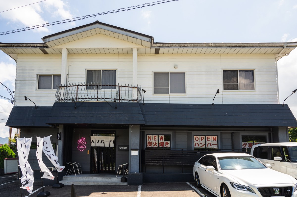 富士吉田市にある55steak姉妹店「炭火焼ハンバーグ専門ばーぐはん」。黒毛和牛100%でつくる手ごねの自家製ハンバーグを定食スタイルで楽しめる珍しいお店。