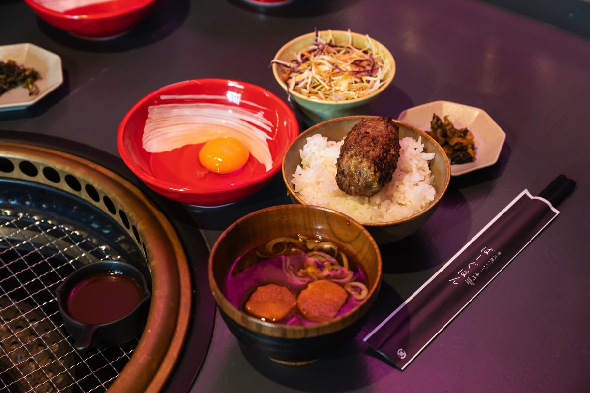 ・ばーぐはんセット 1,550円(黒毛和牛バーグ2個・ごはん・味噌汁・生たまご・サラダ・漬物付き) ・生ハラミステーキセット 2,850円(生ハラミステーキ・黒毛和牛バーグ2個・ごはん・味噌汁・生たまご・サラダ・漬物付き) ※ごはんおかわり自由 |