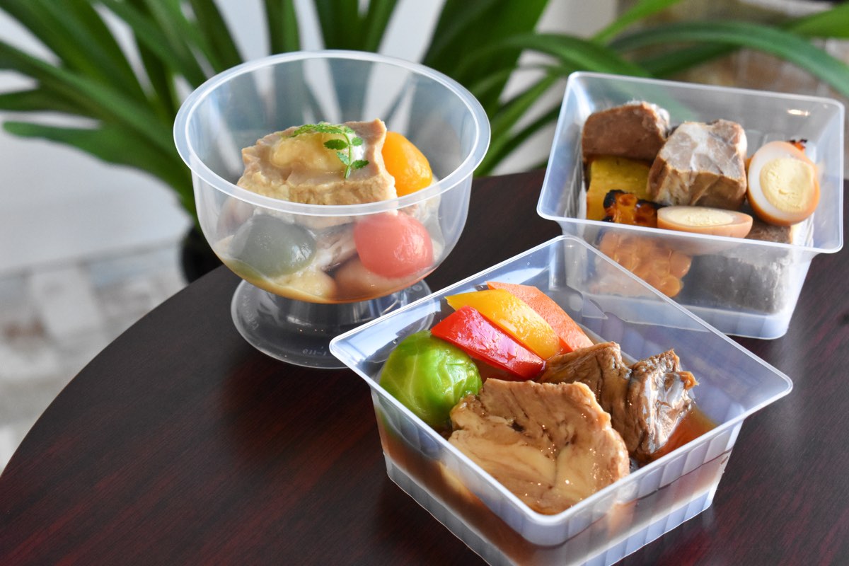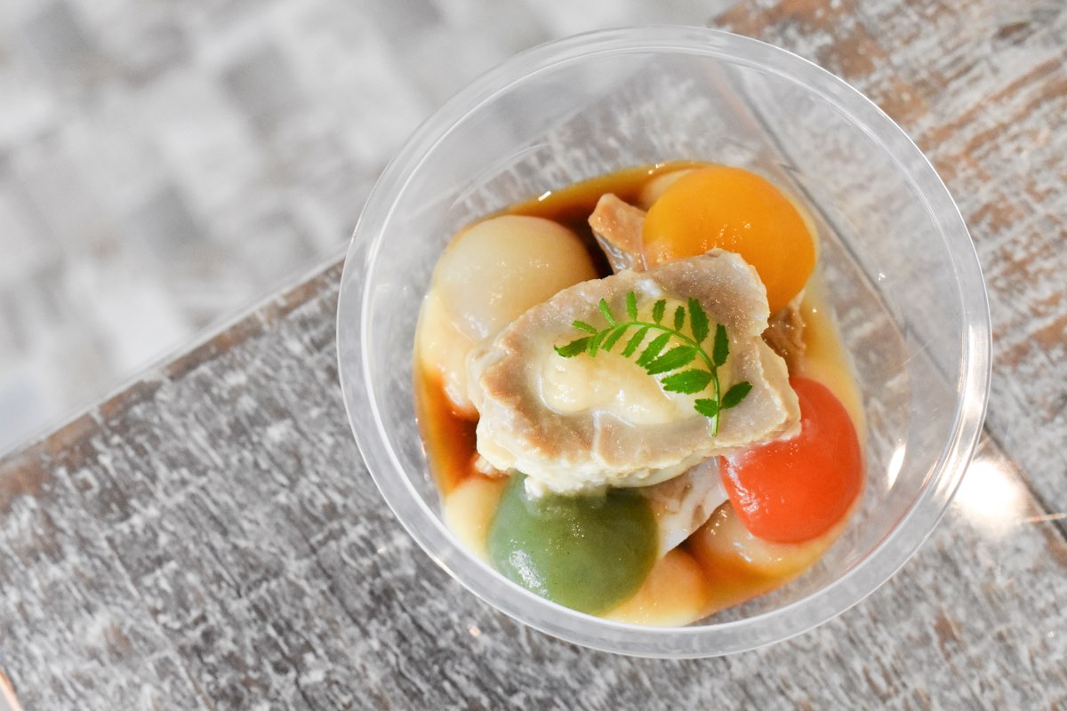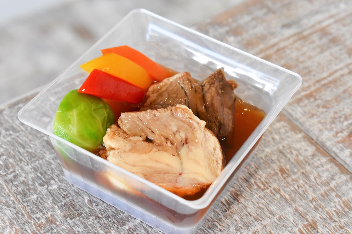和食料理の経験を持つ店主が丁寧に仕上げる角煮は、脂身が少ない国産豚の肩ロースを使用し、和風ベースでさっぱりとした味わい。常温はもちろん、温めて食べ進めると新たな風味が味わえる工夫が隠されているとか♪