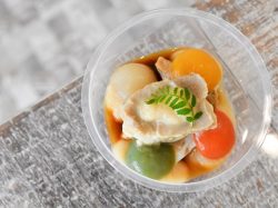 ・しゅうゆ味 森に架かった虹 432円 ・みそ味 月と太陽のマリアージュ432円 ・ぽんず味 こつぶなジュエル 432円 ・スモーク 黄昏のえんとつ 464円 ・ポテトサラダ 162円 ・ピクルスサラダ 162円 ・玉こんにゃくの煮浸し 270円 ※すべて税込 |