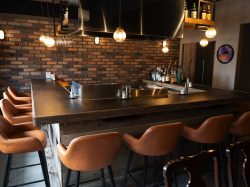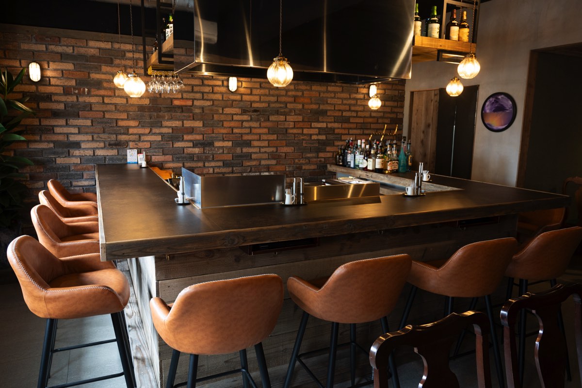 黒を基調にしたスタイリッシュな店内は、オープンキッチンを囲むカウンター席とテーブル席があり、五感でこだわりの肉料理を堪能できる。