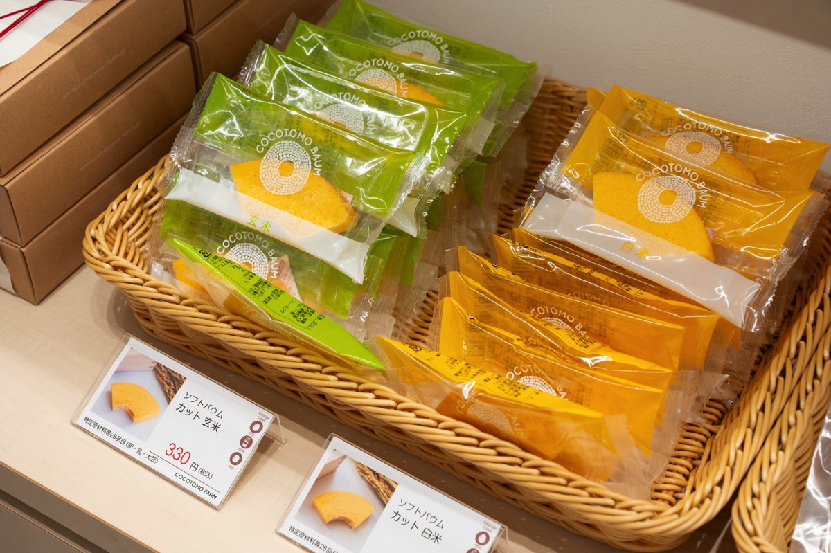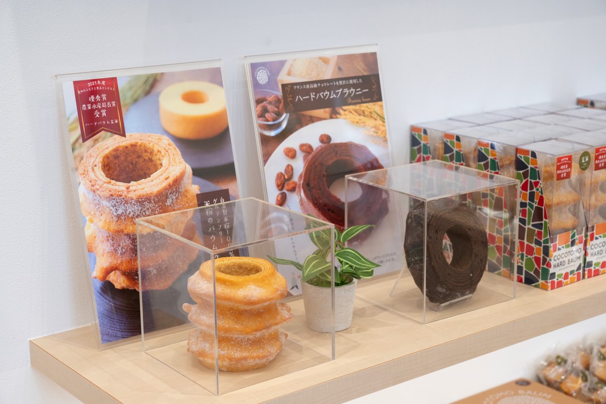 一番人気の玄米ハードバウムは香ばしく、じっくり焼くことでまわりはサクサク、中はもっちりとした食感に。カットやハーフサイズ、スティックもあるので、普段使いやギフトなどに活躍しそう♪