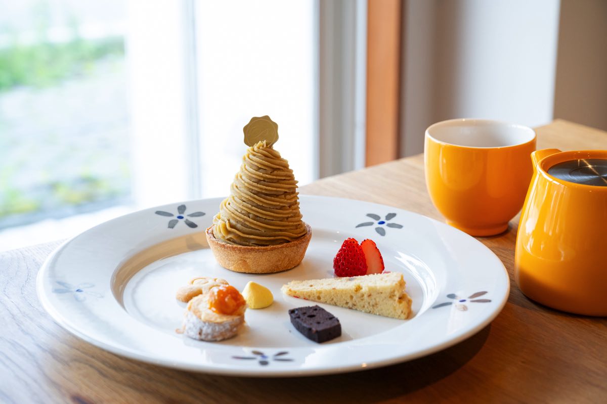 テイクアウトはもちろんのこと、イートインでは選んだケーキにクッキーやコロネの焼菓子が付く贅沢プレートが楽しめる。自家製ジャムの購入も可能。