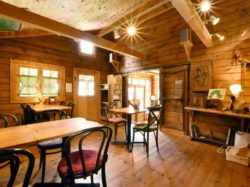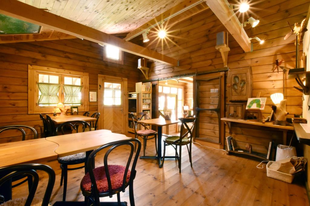 イス以外、全て建物から家具まで手作りの木のぬくもりに包まれた素敵なカフェ。