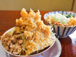 「二郎系肉うどん」や「超超 二郎系肉天うどん」など、どれも背油や野菜がたっぷりで食べ応え◎。やみつきになる味わいとボリューム感は、一度食べたら虜になること間違いなしだ。