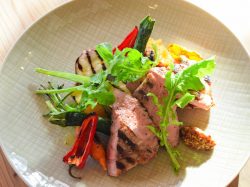 北杜市の地産地消にこだわり、サラダやメインの付け合わせには 「クレイジーファーム」の無農薬、無化学肥料の野菜を使用している。
