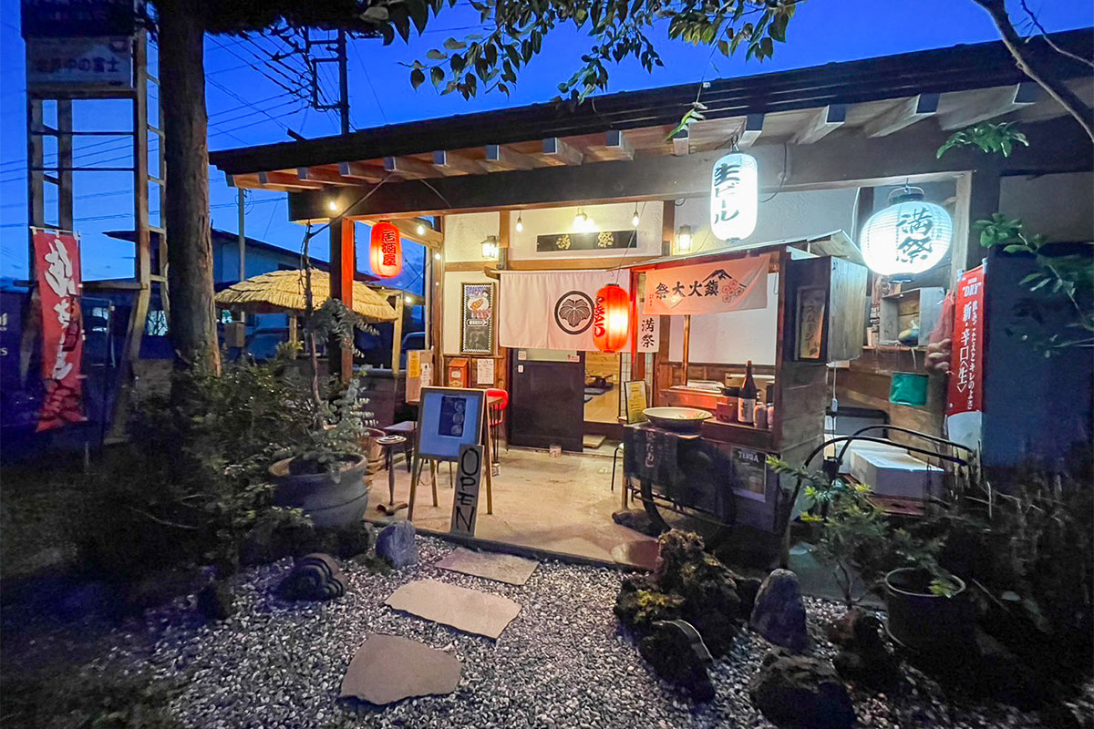 富士河口湖町にある「河口湖のれん村」内で営業している居酒屋「満祭MANSAI」。