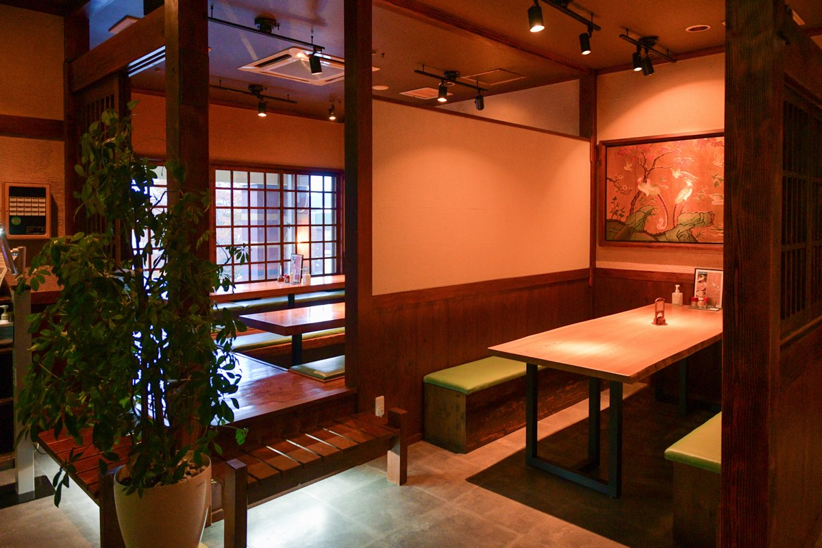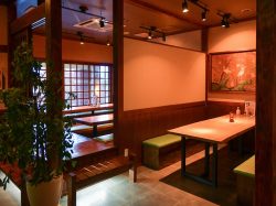 店内は全体的に木のぬくもりが溢れる和の空間。カウンターでのお一人様から大人数の宴会迄、様々な用途でお酒を楽しめる。