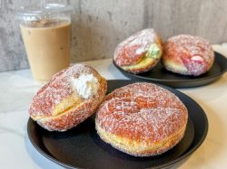 一番人気のプレーンのほか、子どもに人気のカラースプレー、男性に人気のキャラメルなど、12種類のフレーバーが揃う。丸ごとそのままはもちろん、+100円で食べやすくカットもしてくれる。
