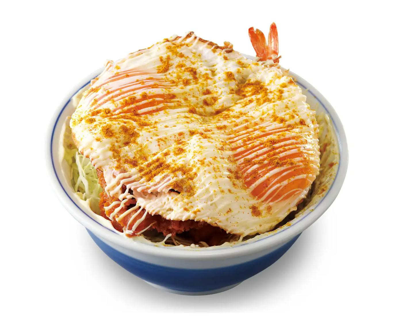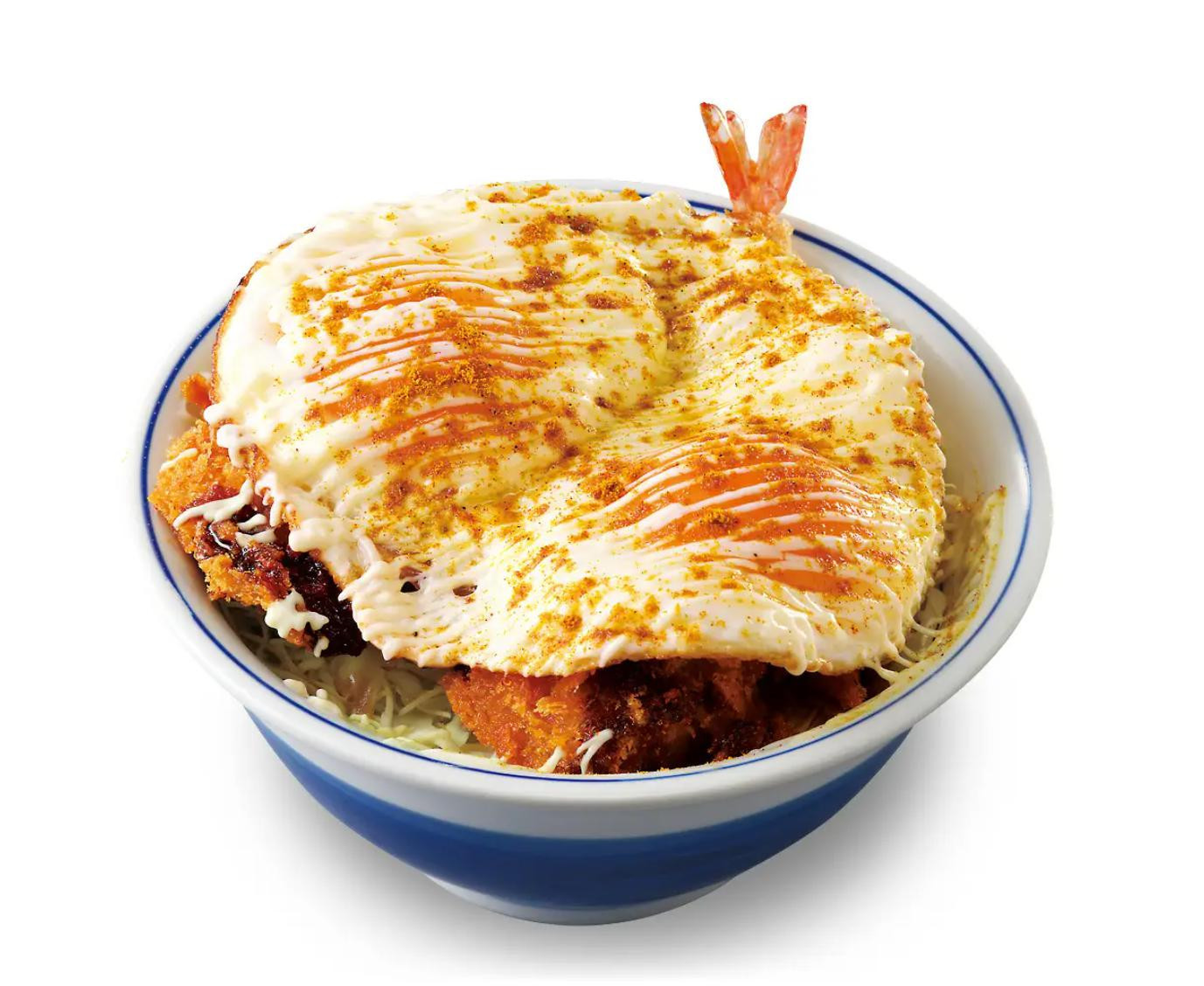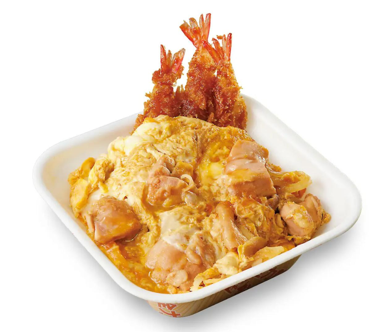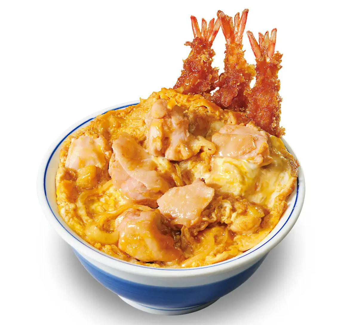 サクサク食感を生み出すかつやのパン粉を纏った海老フライが3本と さらに鶏の旨味とかつおの風味が溶け込んだ特製の割り下で鶏肉を煮込み、鶏卵2個を使用した卵とじ。 ボリューム満点、贅沢な新作をご賞味あ... -